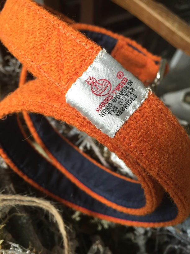 Materials: navy superdry cotton & orange Harris Tweed.