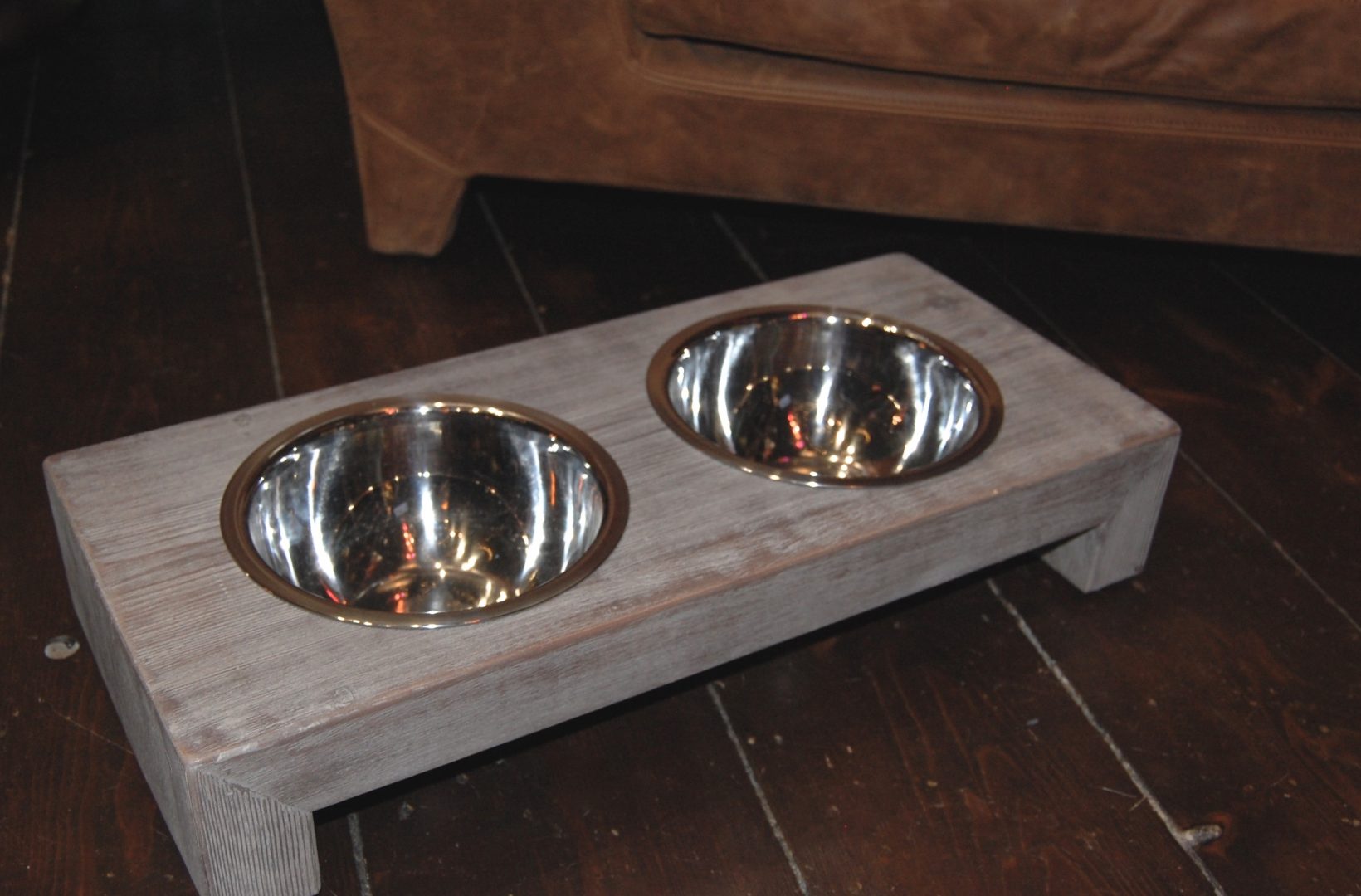 A trendy double pet feeder by Lord Lou, easy to maintain, made of recycled wood. The bowls are made of stainless steel and can easily be cleaned in the dishwasher. Available in burnt oak colour.