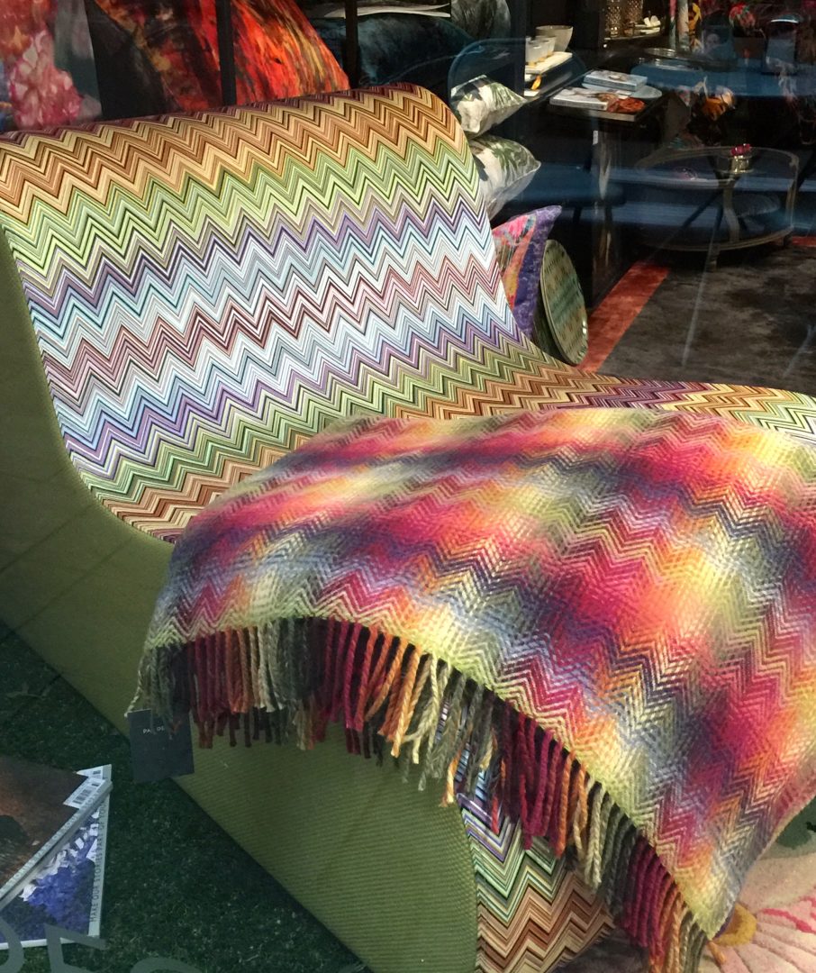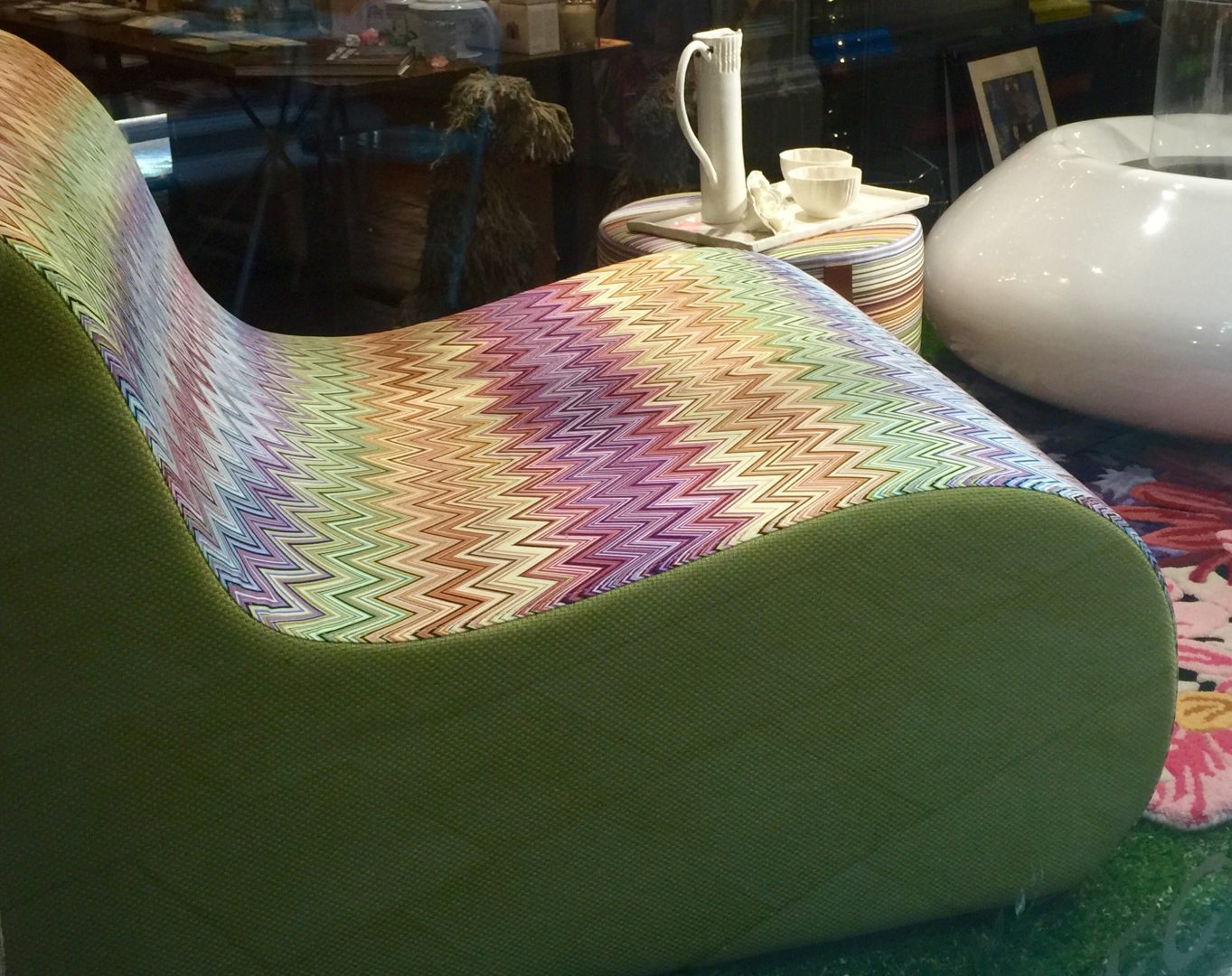 Missoni Home: Virgola Chair in their stunning trademark zigzag fabric teamed with a beautiful striking acid green